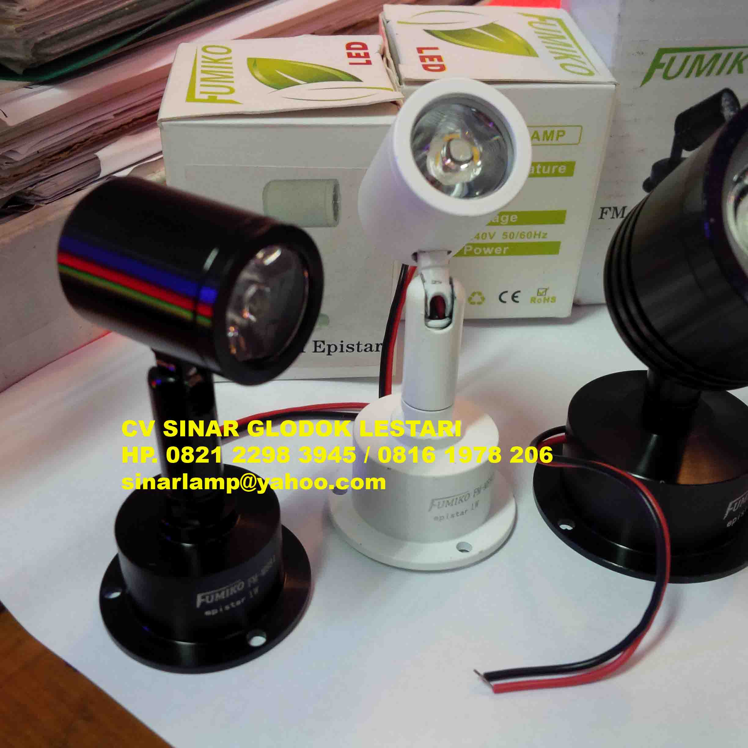 Lampu Sorot Mini Epistar LED 1W Fumiko adalah Lampu sorot LED model mini untuk interior penerangan estalase 1 Watt 220V merk Fumiko